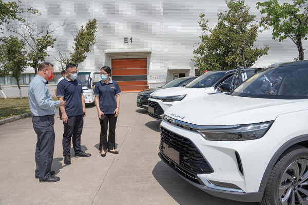 随后,翁礼成一行前往冲、焊、总装车间实地调研,详细了解北汽广州公司生产工艺、在产车型等情况。在总装车间整车下线区,翁礼成一行还试驾了北京X7、EU7等车型,并详细了解车辆功能概况。