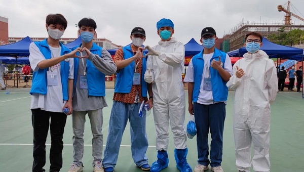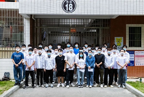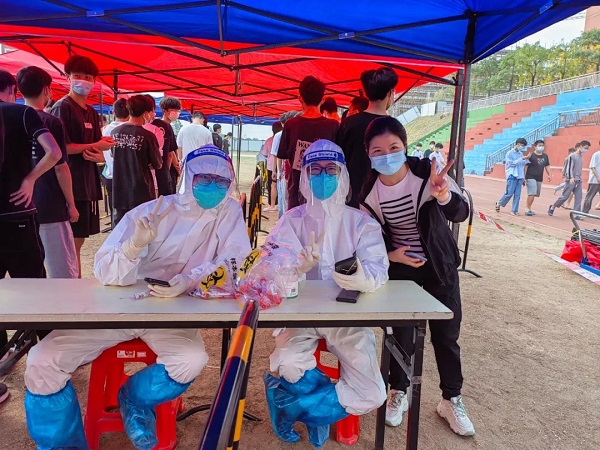 工商管理学院志愿者逐一扫楼核酸后合影(供图:工商管理学院姚心贝)