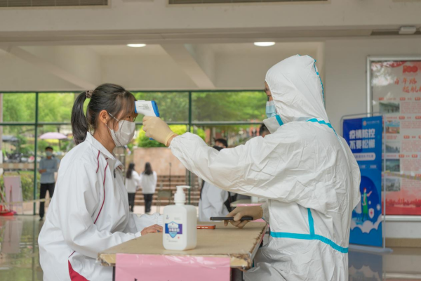 本次演练的背景是预设一名学生张某在上课时发热,诊断为疑似病例,转诊后初次核酸检测结果为阳性,随后华商教育集团启动应急响应指令,开展消毒、流行病学调查、封控、隔离、后勤保障等疫情处置。