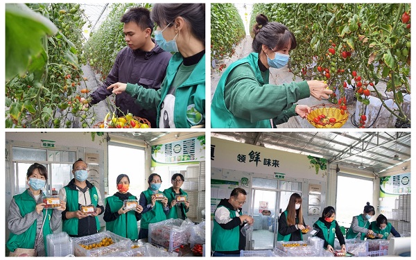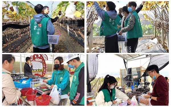 1月4日上午,在国贸学院老师的带领下以21名学生为主导的服务团队来到万果小镇。为进一步做好充分的直播助农准备,助农直播社会实践服务学生团队在了解派潭万果小镇的特色果蔬农产品、企业文化精神、现代化种植技术、种植规模、高效的包装管理流程及特色采摘体验等基本情况后,对现有农产品进行详情图拍摄、推广宣传视频拍摄及产品采摘、包装、上架、地推等工作,高效的工作成果获得了老师及企业的一致肯定,社会实践活动成效初步成型。