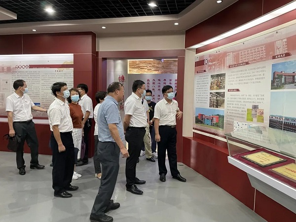 两校在行政楼一楼进行合影留念并参观校史馆和中药标本馆。
