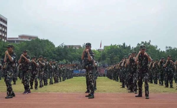 9月27日上午,beat365中文唯一官网2021级新生军训总结表彰大会在学校西区田径场举行。
