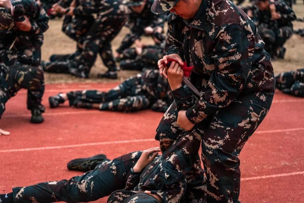 硝烟弥漫的战场,大战一触即发。最引人注目的就是压轴出场的反恐方阵,在表演完停止间战术据枪动作、临危战术快速反应动作后,方阵队员们表演模拟了针对恐怖袭击事件的打击行动,现场狼烟四起,战况激烈,围观的学生也热情高涨。不论是观众还是参演学生,都深感幸福生活的背后,是一群默默无闻的子弟兵在保家卫国。