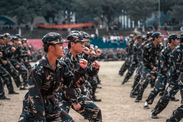 首先进行的是检阅仪式,林琨智在军训教官的陪同下检阅了全体新生。