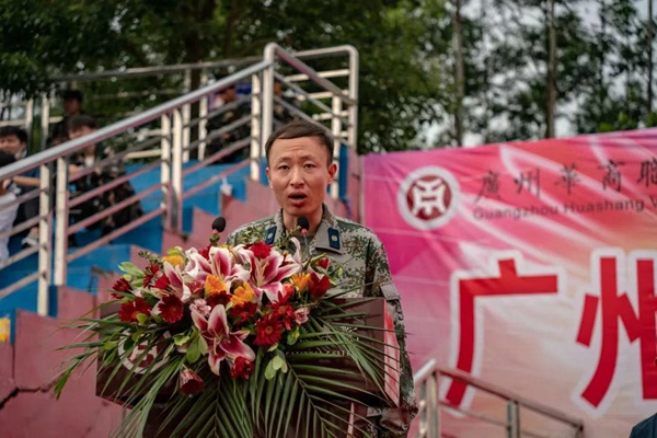 增城区人民武装部政治工作科科长祁海洋作军训总结讲话。祁海洋强调,要牢记在军训中养成的良好生活学习习惯和组织纪律观念,学会团结协作,时刻保有集体荣誉感;要坚守在军训中磨练出的坚韧不拔的强大意志和吃苦耐劳的精神品质,敢于迎接一切困难和挑战;以饱满的热情和高昂的斗志迎接即将开始的大学生活,在未来的人生道路上攻坚克难,努力让自己成为有担当的、德智体美劳全面发展的时代青年,成为中国特色社会主义的建设者和接班人。