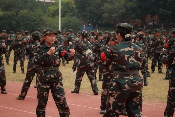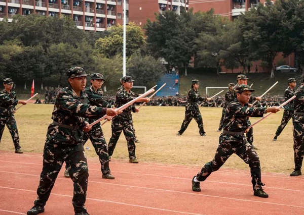 直拳、摆拳…一招一式练出在综合格斗术方阵同学的昂扬斗志,热血青年尽显英雄本色!