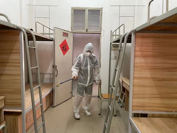 宿管员在宿舍发现学生有发热、咳嗽,立即联系医务室人员移送隔离室。