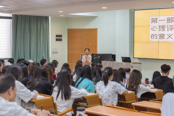第二讲由林淡芸老师讲授健康评估课程,主要内容是心理评估。林老师的授课语言流畅,分析讲解透彻,注重师生互动。她在课堂上阐述了护理从业者自身心理评估的重要性,引导学生积极向上,将课程思政巧妙融入了课程教学中。