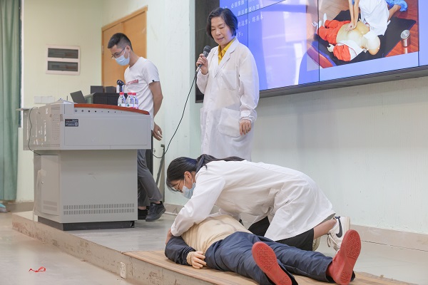 活动邀请校医务室王宁菊医生和黄彩根护士为大家普及关于预防突发公共卫生事件应急处置的知识。王医生为大家详细讲解外伤如何止血、伤口简单消毒及包扎处理等知识。王医生还提到骨折后的注意事项,还有常见的学生烫伤、烧伤的处理方法,以及预防传染疾病和红火蚁、蜜蜂蜇伤的应急处理技巧。随后黄彩根护士为大家演绎了徒手心肺复苏术,让大家掌握基本的急救技能。现场气氛活跃,内容生动、充实。
