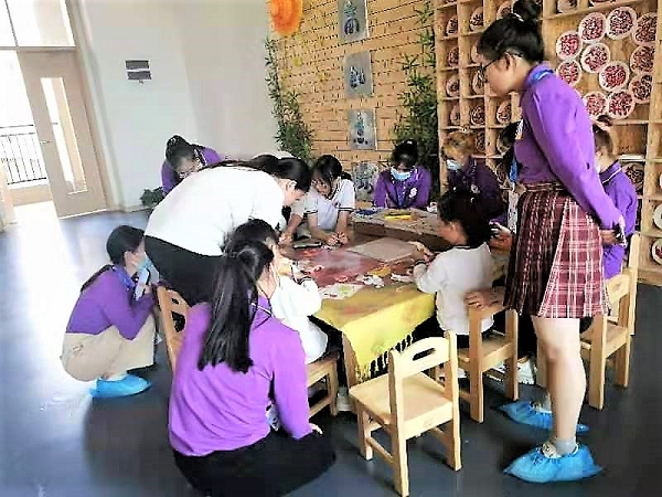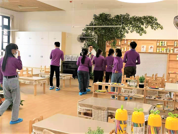 授牌仪式结束后,刘玉东副校长和教育与艺术学院领导在华商•拓慧幼教集团领导的陪同下参观了华商外语实验幼儿园的教室、音乐室、戏剧室等场所。冠名班学员在园长老师的带领下进行了第一次幼儿园教学活动见习。