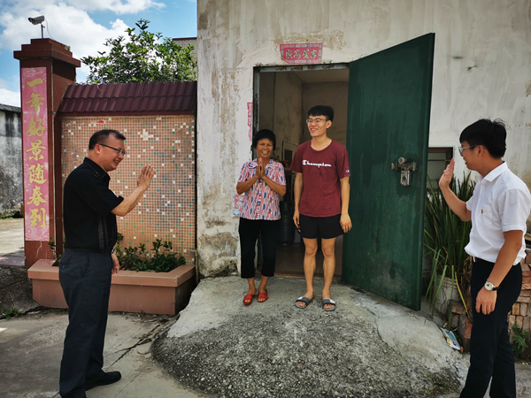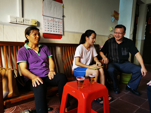 为纪念中国共产党成立99周年,充分体现党组织对老党员、生活困难党员的关心和爱护,7月16、17日,beat365党委书记翁礼成教授深入江门和云浮,走访慰问了生活困难学生党员,并为他们送去慰问金,学校组织部部长邓秀芬同志和辅导员黄向荣同志陪同走访。