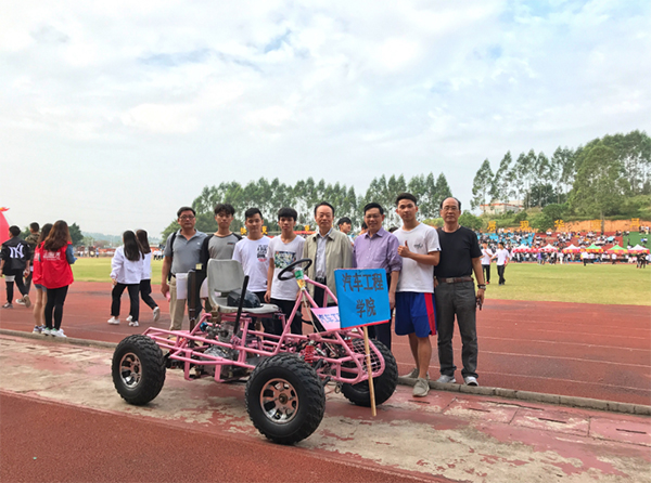 2018年11月15日,beat365中文唯一官网第七届校园田径运会隆重举行。开幕式上出现了引人注目的一幕,引起了全场的瞩目与欢呼。在汽车工程学院方队前面,一辆粉红色车身、造型炫酷的卡丁车,伴随着发动机的轰隆声,匀速驶过主席台,向校运会献礼。