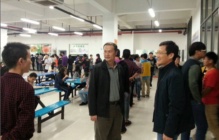 在交流中,何院长表示,广州苏宁云商物流有限公司是我院物流专业重要校外实习基地,期待今后双方在人才培养方面有更深入的合作。岳从发经理在讲话中肯定了我院物流管理专业学生在今年“双11”活动中作出的努力与成绩,感谢我院对广州苏宁云商物流的大力支持。同时,期待与我院成立“苏宁班”,共建“苏宁商学院”等更深层次的合作。交流会后,何院长一行走进仓库、员工食堂、学生宿舍亲切询问了我院实习生的工作情况。学生对院领导的探望表示非常高兴,对实习环境比较满意,并跟大家一起分享了这段时间的实习心得。(文/工商管理系 李海东)