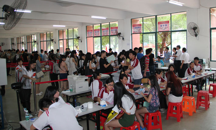 校园内,报到及缴费大厅人头攒动,秩序井然。迎新工作人员个个精神抖擞,热心解答新同学及家长们的咨询问题。新生行李服务点的学生志愿者们热情帮助新生们搬运行李,相互协作,服务到位,赢得了新生及家长们的良好赞誉。同时,在广州市各车站点的负责老师、学生志愿者们均早出晚归,严谨细致,不辞劳苦,不畏高温,周全的服务确保了新同学和家长能够安全、顺利地来到学校。