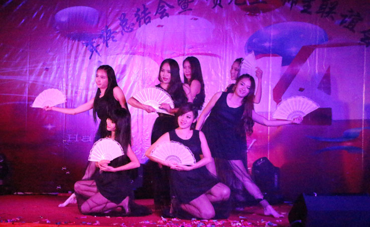 晚会节目丰富多彩,精彩纷呈。以一首声名远扬的《大地飞歌》拉开晚会的帷幕,寓意着我系梦想高飞,共创辉煌;慷慨激昂的诗朗诵《中国梦》和激情澎湃的《武之舞》,描绘了祖国新篇章,更把中国武术的精魂叙说得酣畅淋漓;中国风舞蹈《咏春》把女生优雅轻盈的舞姿发挥到极致;当萨克斯深情款款的《月亮代表我的心》撞上古筝民族风情的《彝族舞曲》,给现场的各位带来了一场视听盛宴。《爱的六重奏》和《年轻的朋友来相会》则唱出了青春的美好。精彩的节目不断,晚会精心准备的抽奖环节、“猜歌王”等小游戏把现场师生互动推向另一个高潮,在惊喜之余收获一份份的小礼品。晚会现场气氛热烈,高潮迭起,令人如痴如醉,难以忘怀。晚会最终在一曲意蕴深长的合唱《爱因为在心中》完满落幕。