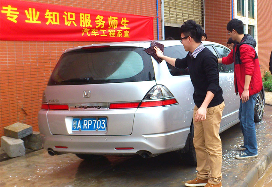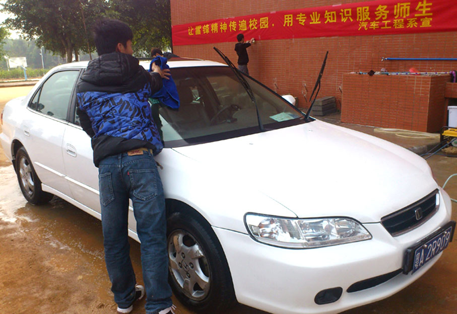 让雷锋精神传遍校园,用专业知识服务师生。3月14日,在学院领导和系何南昌主任的指导下,我系学生志愿者在创新楼汽车实验室东侧门外举办了“学雷锋,爱车美容义务服务”活动。