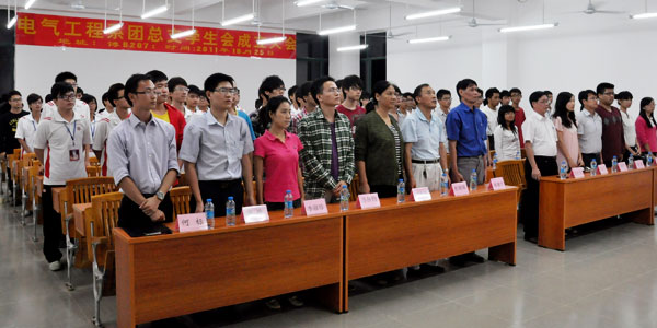 金秋十月,丹桂飘香。为了使团组织和各项学生工作更顺利地开展, 2011年10月25日,电气工程系在博学楼B207教室召开了首届团总支学生会成立大会。院党委黄桂标书记出席大会,电气工程系林德杰主任,党支部杜晓瑞书记、教研室吴文英主任、团总支何标书记和电气工程系全体教师、各班班干部参加了会议。学院其他系团总支书记、学生会主席也应邀出席了本次会议。
