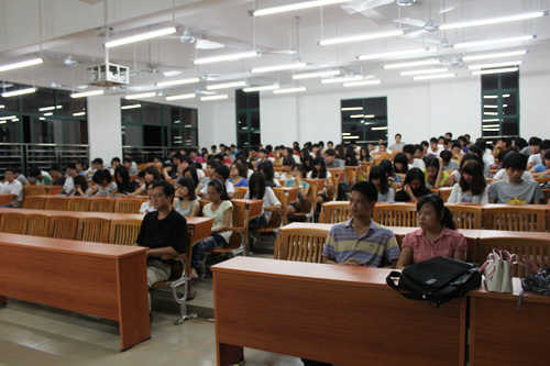 会上,李正义主任转达了学院陈达美院长和黄桂标书记对同学们的关心,希望同学们参加“广交会”实习期间要有一种荣誉感、责任感,能好好珍惜本次实习机会,在实践中学习,提高专业技能,培养吃苦耐劳的精神,提高个人与企业员工交流和沟通能力,锻炼英语口语运用能力。胡亟飞老师向同学们详细介绍了此次实习教学的工作内容和工作环境,强调了大学生参加实习活动的重要性和必要性,希望各位同学要严格遵守“广交会”组委会纪律,踏实工作,注意安全。随后,李主任和老师就同学们关切的问题一一回答,并走下讲台与学生们面对面交流,让每位学生安心实习,圆满归来。物流专业老师也就实习中同学们应该注意的问题和实习的内容进行了专业辅导。