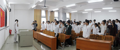 为纪念五四运动92周年,深入开展团的组织建设,5月4日下午,我院2010-2011学年度新团员宣誓仪式在创新楼201室举行。院团学干部及新发展的团员近一百人参加了仪式。