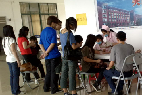 活动中,先后有50多位师生参与了献血,共无偿捐献约10000毫升血液。