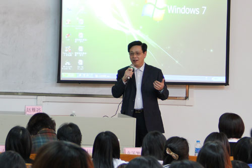 3月29日下午,在院党委黄书记的陪同下,国家一级作家、《炎黄世界》副主编赵小敏女士和旅澳悉尼大学英语教学博士赵雁冰女士,在创新楼101为国际经济与贸易系学生举办了一场主题为“文职人员的人文素质培养”的讲座。