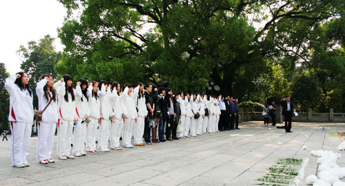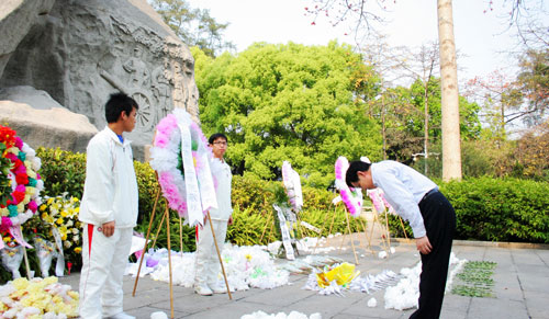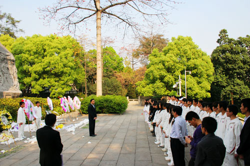 “青山绿水留浩气,翠柏红花慰英灵”。4月1日下午,在学院党委黄桂标书记的带领下,我院师生代表共50余人赴广州起义烈士陵园祭拜革命先烈。参加这次活动的主要是入党发展对象和09级辅导员。纪念活动由学院党委主办、院团委承办,旨在加强革命传统教育和爱国主义教育。祭拜仪式由院团委郭显磊书记主持。