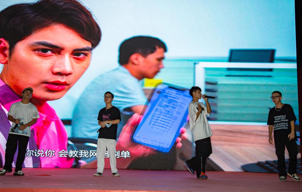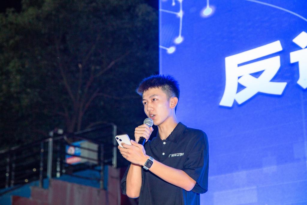 活动现场,反诈配音秀团队通过配音视频表演的形式给大家演示电信诈骗手段。学生代表表演情景歌曲《反诈阵线联盟》,将现场气氛推向高潮。