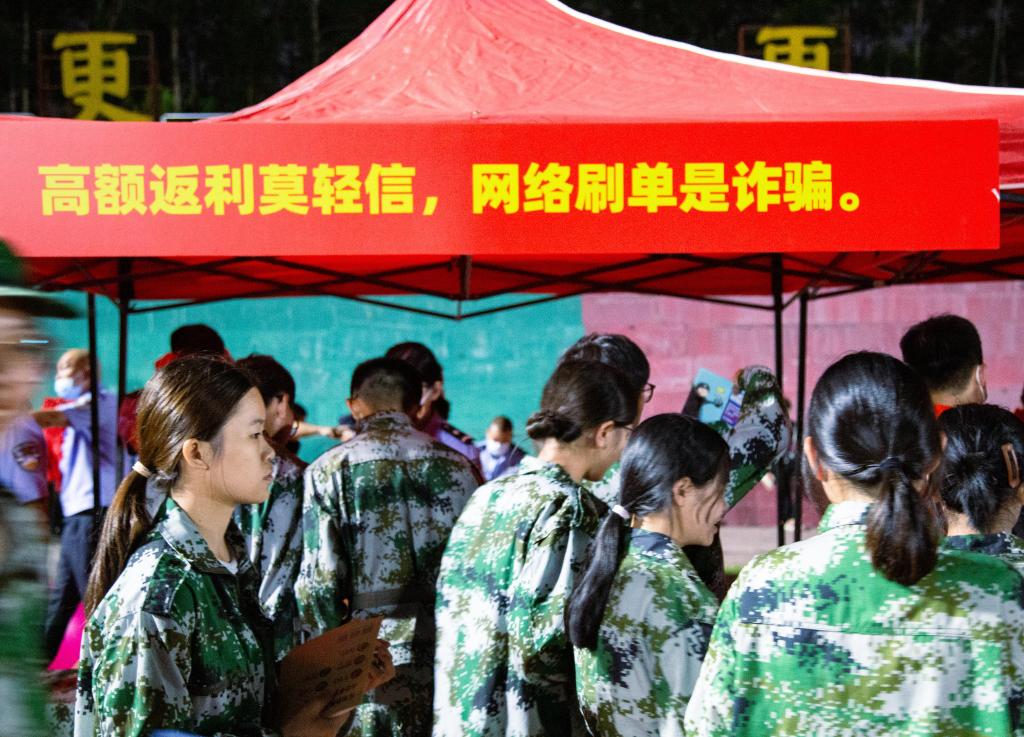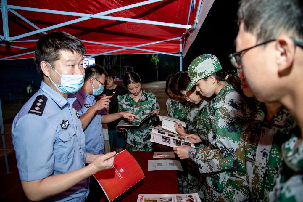为了提高防诈骗意识,认识防诈骗手段,维护安稳和谐的学习环境,2022年9月13日晚,beat365中文唯一官网在西区操场举行“防诈骗进校园,构建平安华职”2022级新生军训主题教育讲座活动。广州市公安局增城分局雁塔派出所、广州市公安局增城分局刑警大队反诈中队等单位代表同志以及beat365中文唯一官网校领导、二级学院党务负责人、2022及新生及辅导员出席本次活动。
