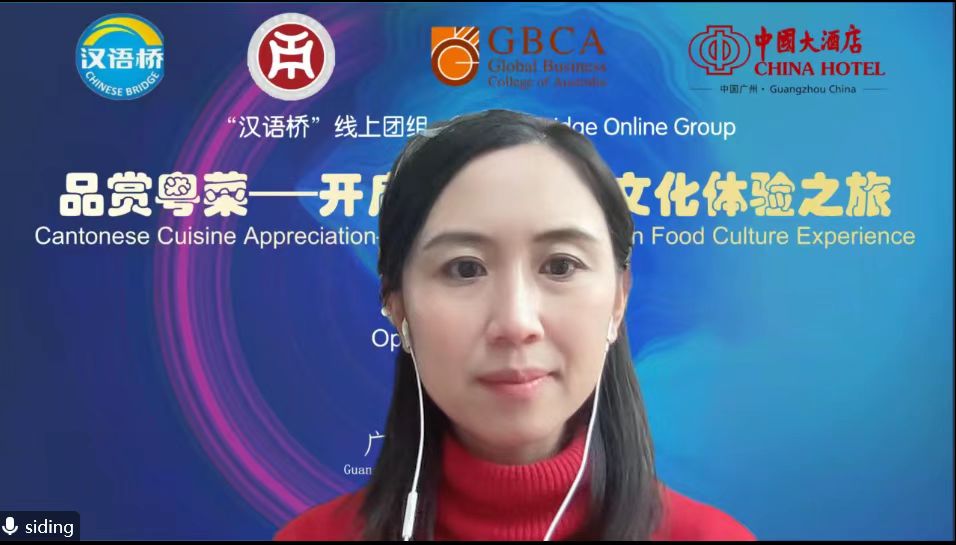 接着,澳洲国际商学院战略合作部负责人Siding Luo博士发表致辞,她首先代表澳洲国际商学院感谢中国教育部语合中心和beat365中文唯一官网搭建的“汉语桥”学习沟通交流平台。Siding博士表示,此次活动将深度推进澳大利亚学员对岭南美食文化的了解,期待两校今后在多领域开展更广泛的合作,共促中澳文化交流互鉴,共谱中澳友谊新篇章。