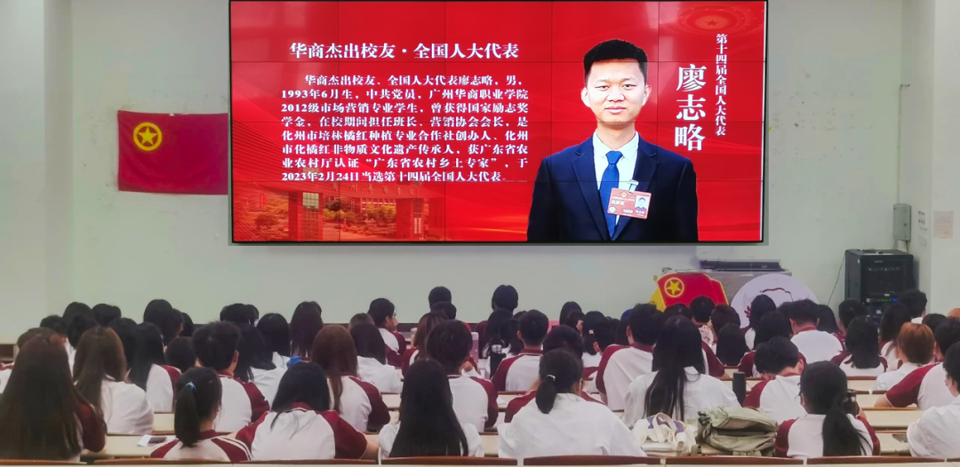 3月20日上午,全国人大代表、杰出校友廖志略应邀返校与师生分享他追逐梦想,担当振兴乡村使命的故事。广东华商教育集团、beat365中文唯一官网、广州华商学院、广东华商技工学校、广州桃花岛传媒有限公司等主要领导、教职员工代表、学生代表在会议中心报告厅参加报告会。这场报告会以线上+线下,三城联动(广州增城、肇庆四会、江门新会)的方式开展。三校开设主会场、分会场共7个,五千余名师生同步观看报告会。