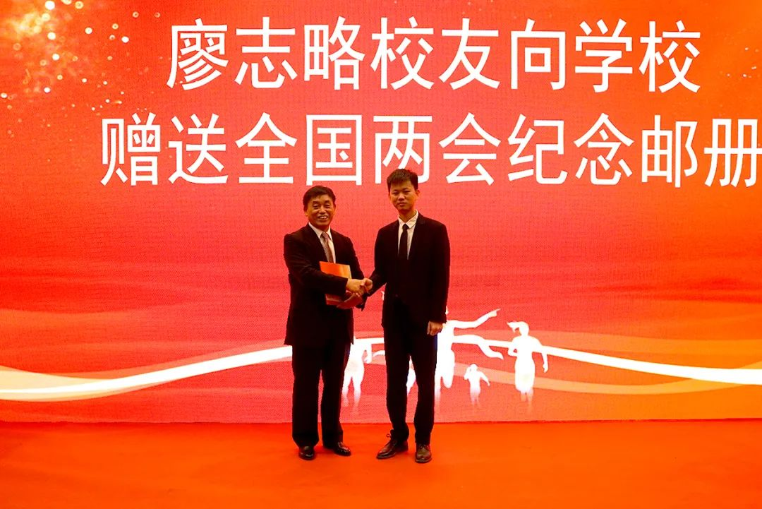 报告会上,学校向廖志略颁发“杰出校友”牌匾和荣誉证书。随后,与会人员一同观看了有关廖志略的视频。
