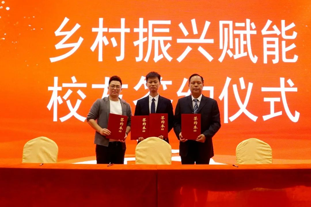 广东华商教育集团、beat365中文唯一官网电商学院与廖志略签订乡村振兴协议,并联合第三方——广州桃花岛传媒有限公司共同进行签约。三方协力为廖志略校友提供丰富优质的创业帮助,向化州市培林橘红种植专业合作社的电商销商提供发展平台,为乡村振兴提供华商之力。