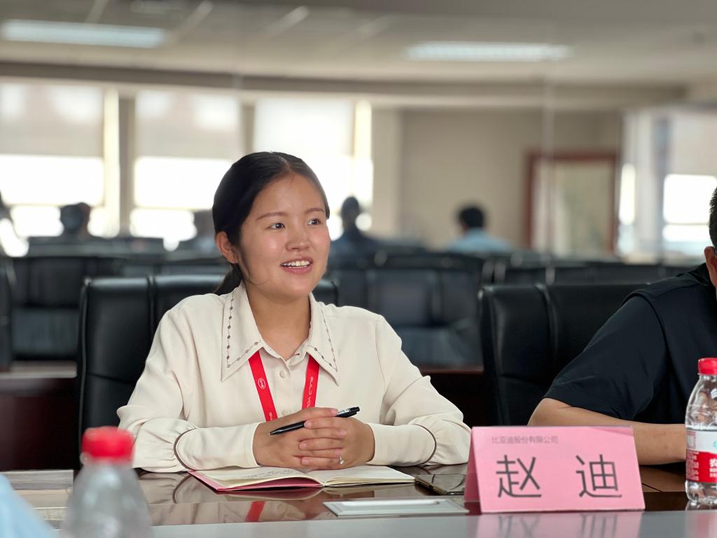 比亚迪赵迪经理介绍了公司的规模、发展态势、人才需求及合作意向,通过合作伙伴行云新能专业的师资力量,将公司技术、生产规范等转化成教学资源,赋能高校人才培养,最终搭建起资源共享、合作共赢的三方合作平台。赵经理还着重介绍了针对校企合作引进人才的有利政策,宽泛的晋升通道、良好的福利待遇、舒适的工作环境、温暖的人员关怀等,都将为校企合作的深入开展提供有利条件。
