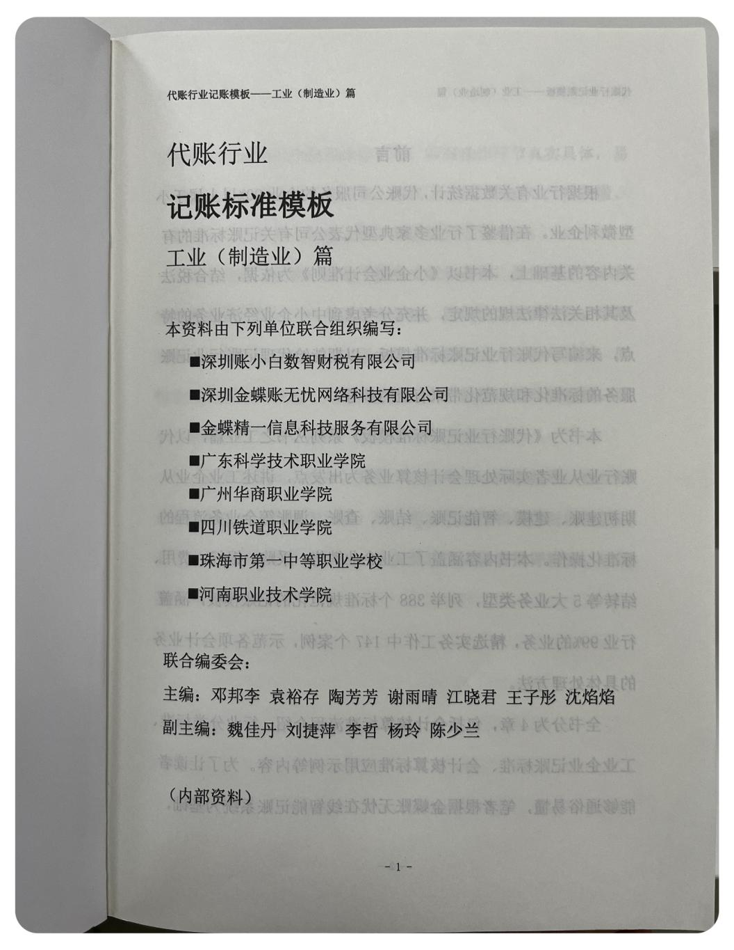 近日,beat365财金学院院长李哲教授、副院长杨玲副教授、副院长陈少兰副教授与深圳账小白数智财税有限公司、深圳金蝶账无忧网络科技有限公司、金蝶精一信息科技服务有限公司、广东科学技术职业学院、四川铁道职业学院等单位联合编写《代账行业记账标准模板——工业(制造篇)》出版。
