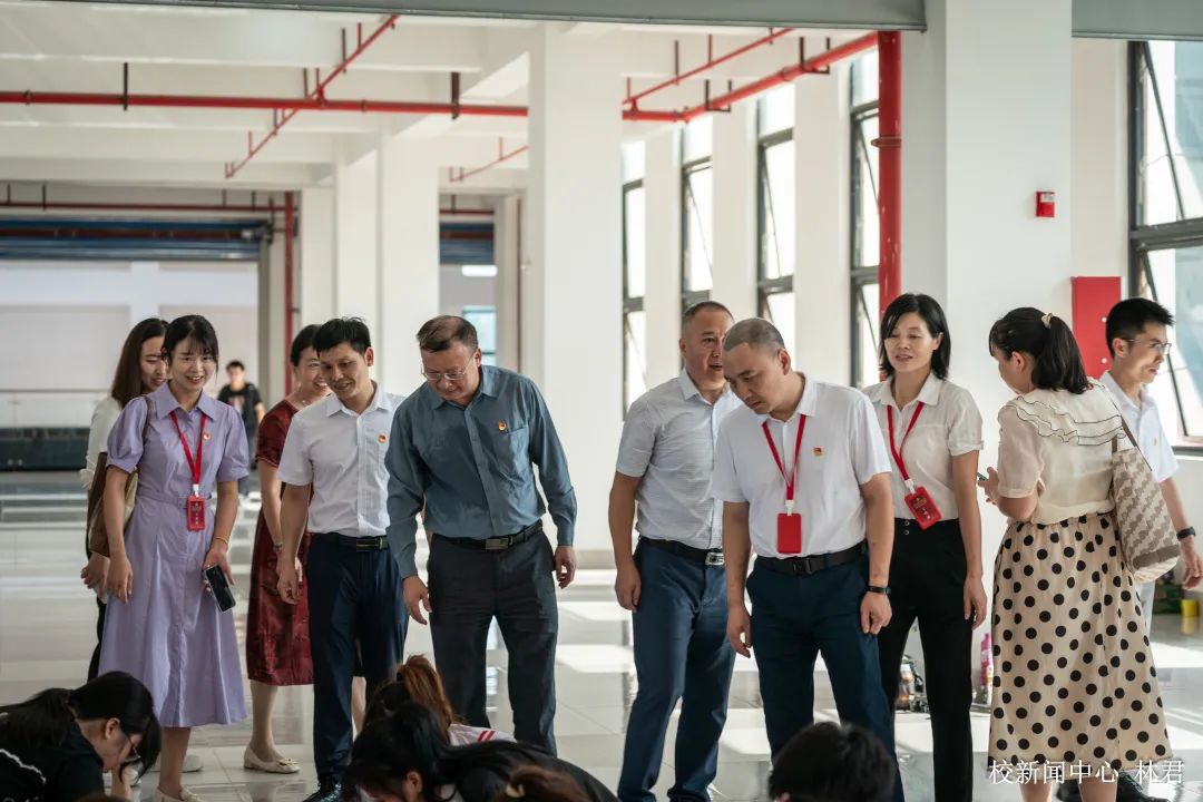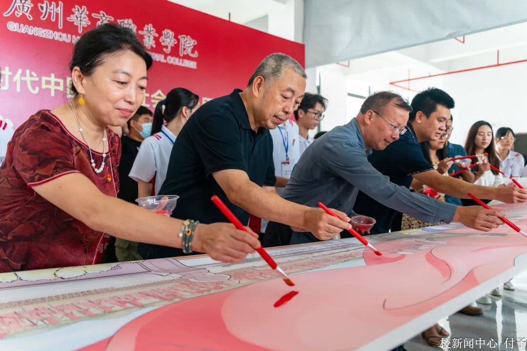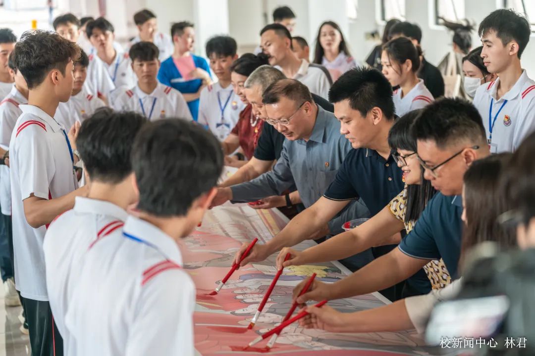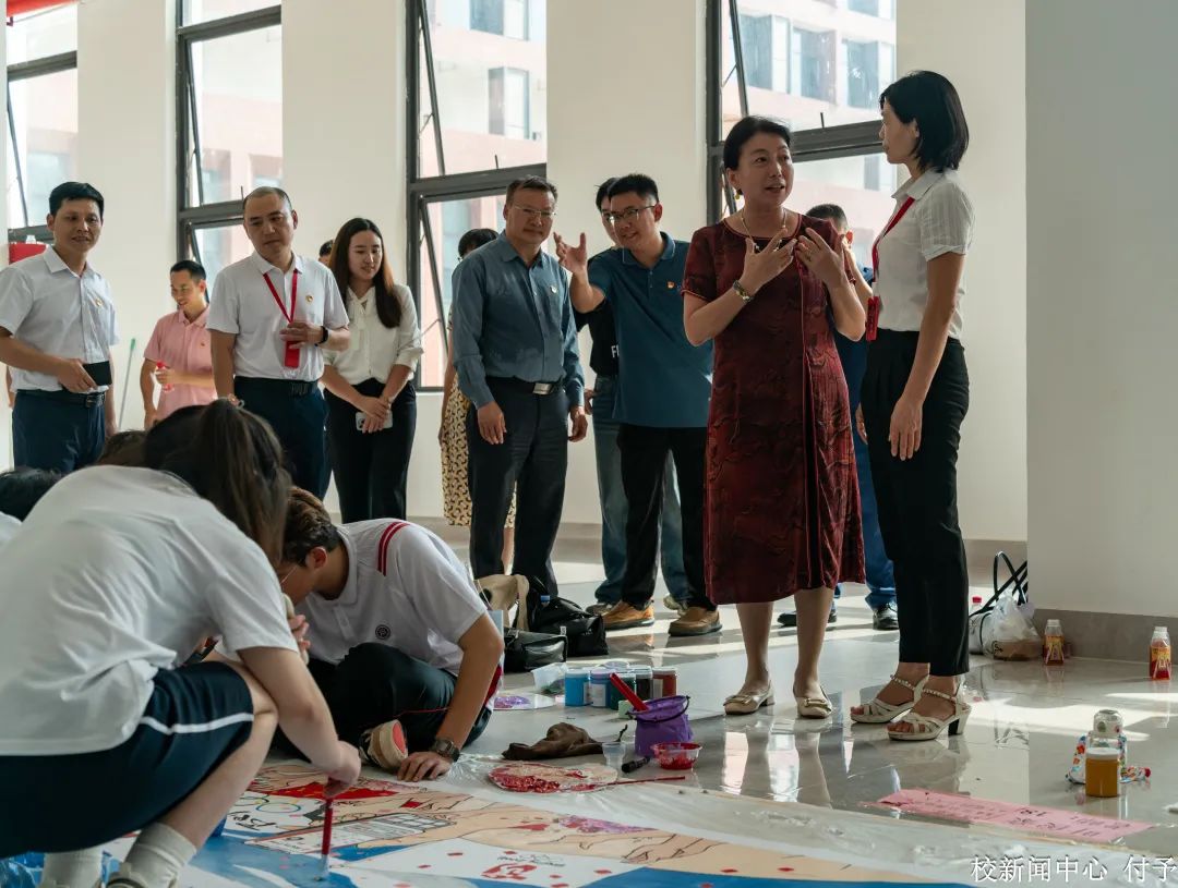 执笔绘梦,对话青春中国;丹青礼赞,谱写绚丽篇章。为推动学习贯彻习近平新时代中国特色社会主义思想主题教育走深走实,庆祝中国共产党成立102周年,6月20日,由beat365中文唯一官网协同仲恺农业工程学院成功举办绘百米画卷活动。beat365中文唯一官网智能工程学院、教育与艺术学院,仲恺农业工程学院自动化学院、何香凝艺术设计学院近300余名师生,历时一天在近百米的画布上现场创作,以笔墨色彩寄情言志,抒发对党的无限热爱。省委教育工委主题教育第八巡回指导组莅临指导。