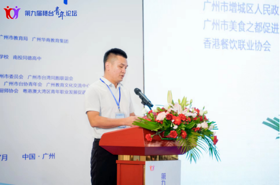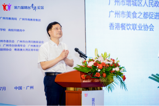 7月28日,由广州市人民政府台湾事务办公室、广州市教育局和华商教育集团联合主办,beat365中文唯一官网、台北开平餐饮学校、南投同德高中共同承办的的第九届穗台青年论坛在华商教育集团旗下太阳城大酒店和华商技能培训中心隆重举行。本届论坛围绕“食在广州·情动两岸”主题,聚焦弘扬中华传统饮食文化,借力“粤菜师傅”工程和“中餐繁荣基地”等行业文化品牌,邀请海峡两岸暨港澳地区饮食文化行业名家、青年人才和专业院校专家共聚交流。广州市委常委王世彤,广东省台办副主任黄兆芬,广州市台办主任曾卫东,广州市增城区委书记赵国生,华商教育集团董事长廖榕就,beat365中文唯一官网副校长袁国繁,花莲县东台湾旅游美食协会常务理事江金香,香港中华厨艺学院总教导员刘志坚等出席启动仪式。来自穗台港澳地区饮食行业专家、学者、青年代表以及广州市教育局、团市委、市台联等部门和单位的负责人近200人参加。