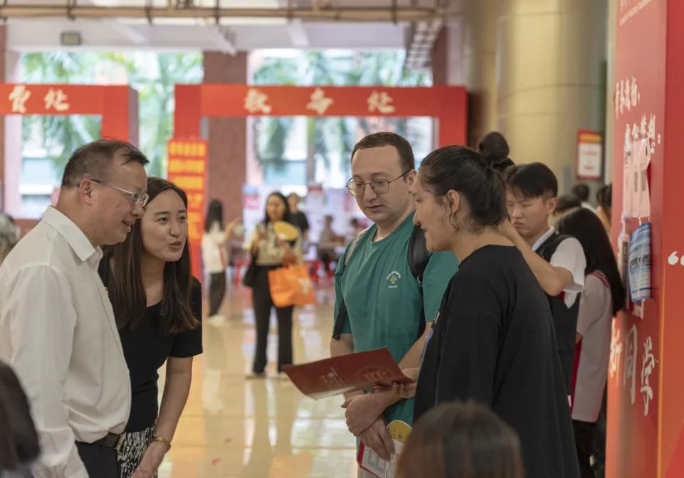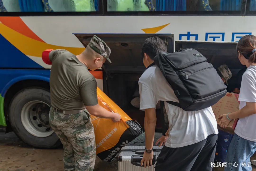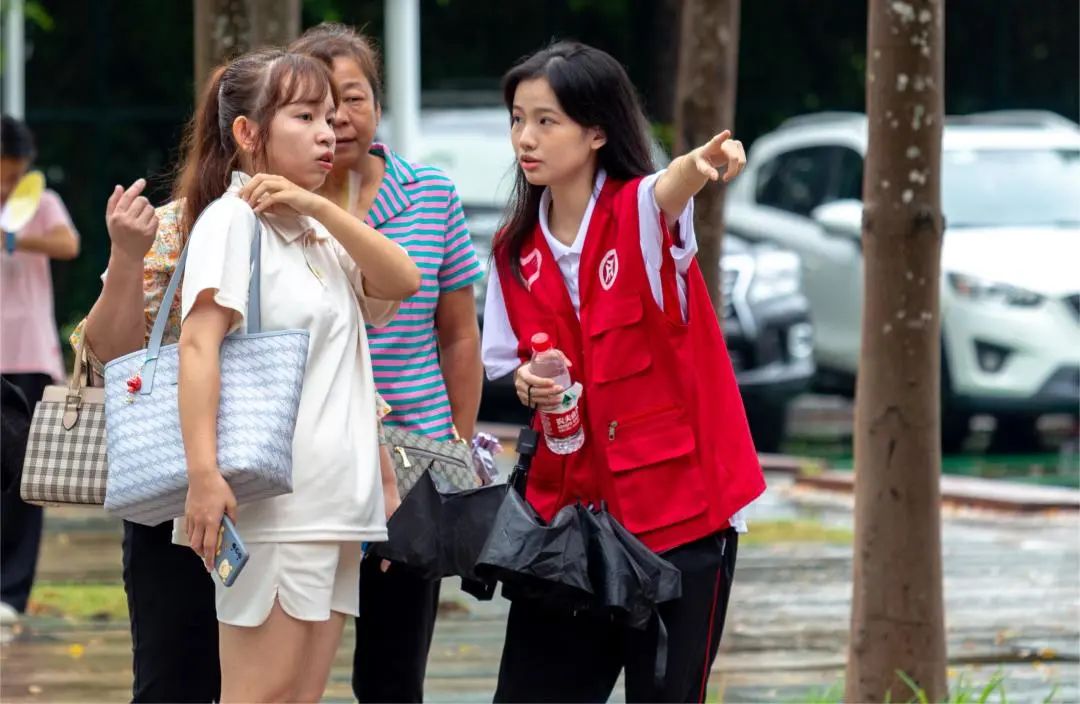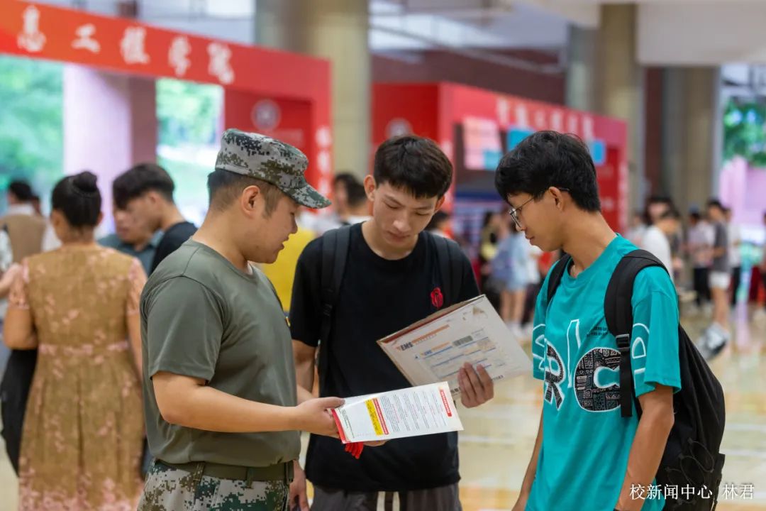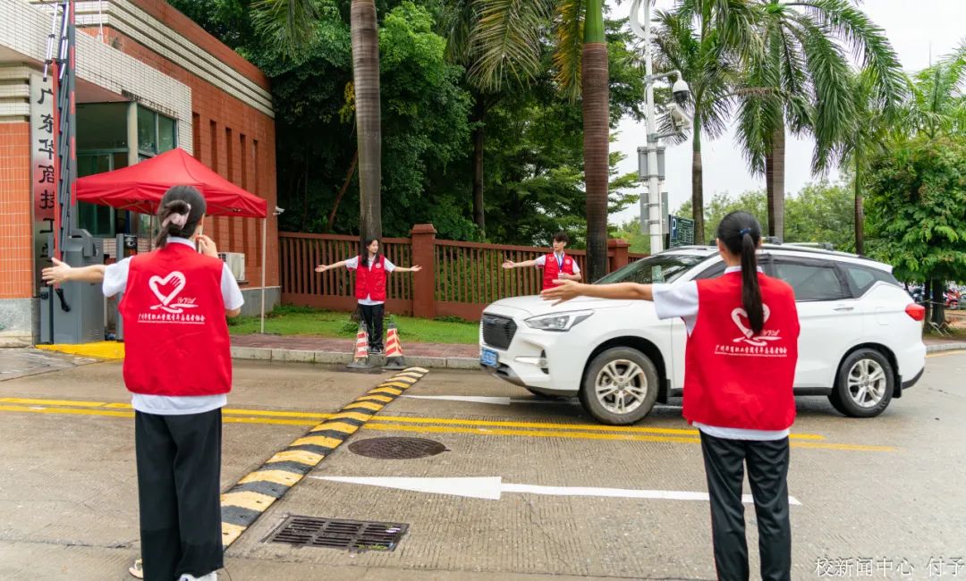 迎新现场,师生志愿者热情始终不变,学校还组建退伍军人学生志愿队,疏通交通、指引方向、热心引导。