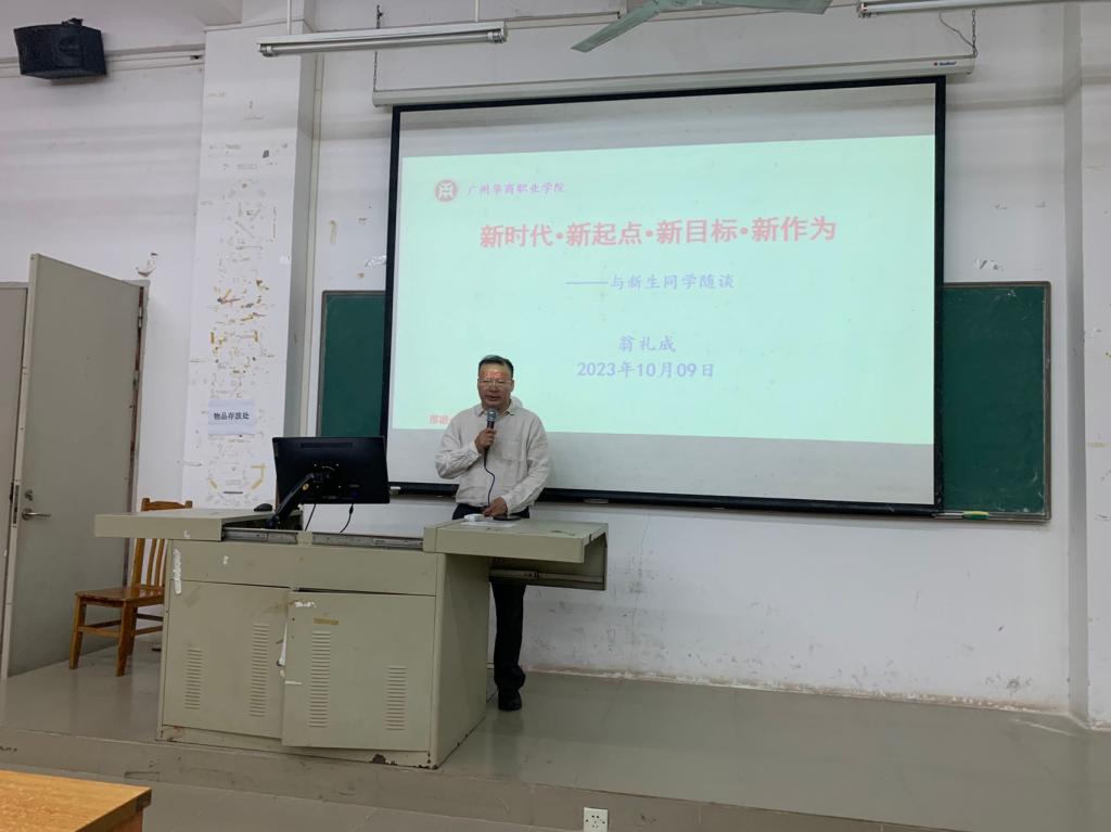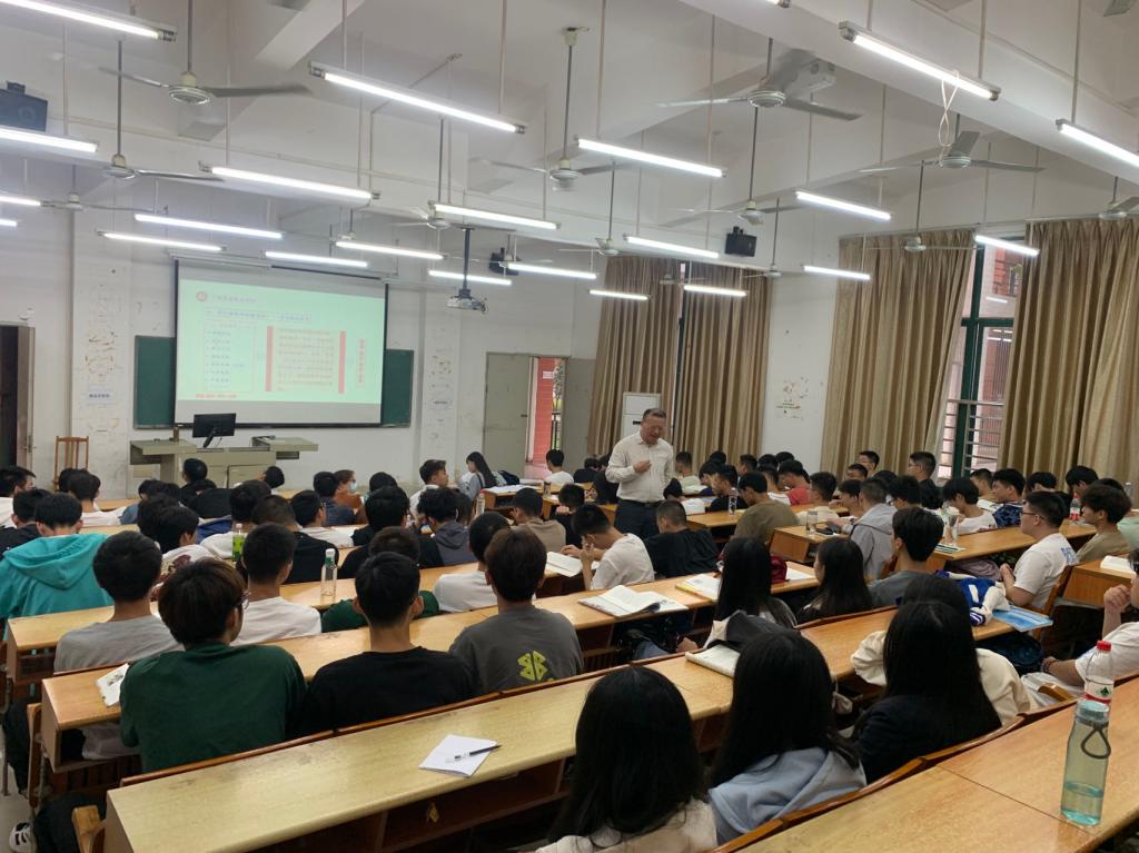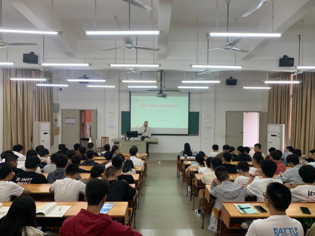 为全面推进“大思政课”建设,切实发挥思政课立德树人关键课程作用和马克思主义理论学科引领作用,把思想政治教育贯穿学校人才培养全过程,10月9日,在博学楼B101,学校党委书记翁礼成走上讲台,为2023级新生讲授题为“新时代﹒新起点﹒新目标﹒新作为”的“思政第一课”,勉励广大新生奋进新征程、建功新时代,为实现中华民族伟大复兴贡献青春力量。马克思主义学院叶教授、副院长兼马克思主义学院与通识教育中心党支部书记李靖及130多名2023级新生参加了课程。