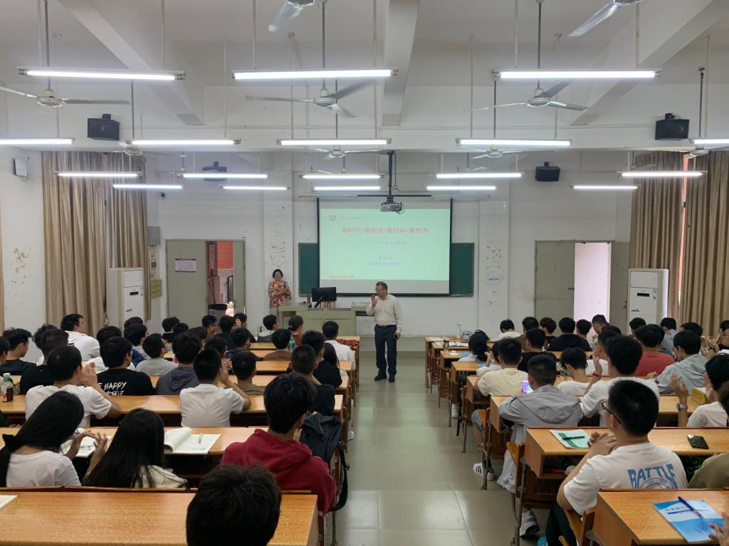 翁礼成书记给新生同学上了一堂精彩生动的“思政第一课”,他从“柏拉图的灵魂三问”、“我们是谁?——不忘求学初心”、“我们从哪里来——新的起点”、“我们要到哪里去?——新的目标”、“我们有何机遇挑战?——新的时代”等五个方面展开讲授,并重点围绕深入学习贯彻党的二十大精神提出的新时代新征程党的使命任务,和同学们进行深入交流。