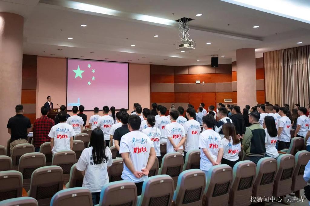 校友会成立大会在庄严的国歌声中拉开帷幕,全体与会人员齐声高唱国歌。