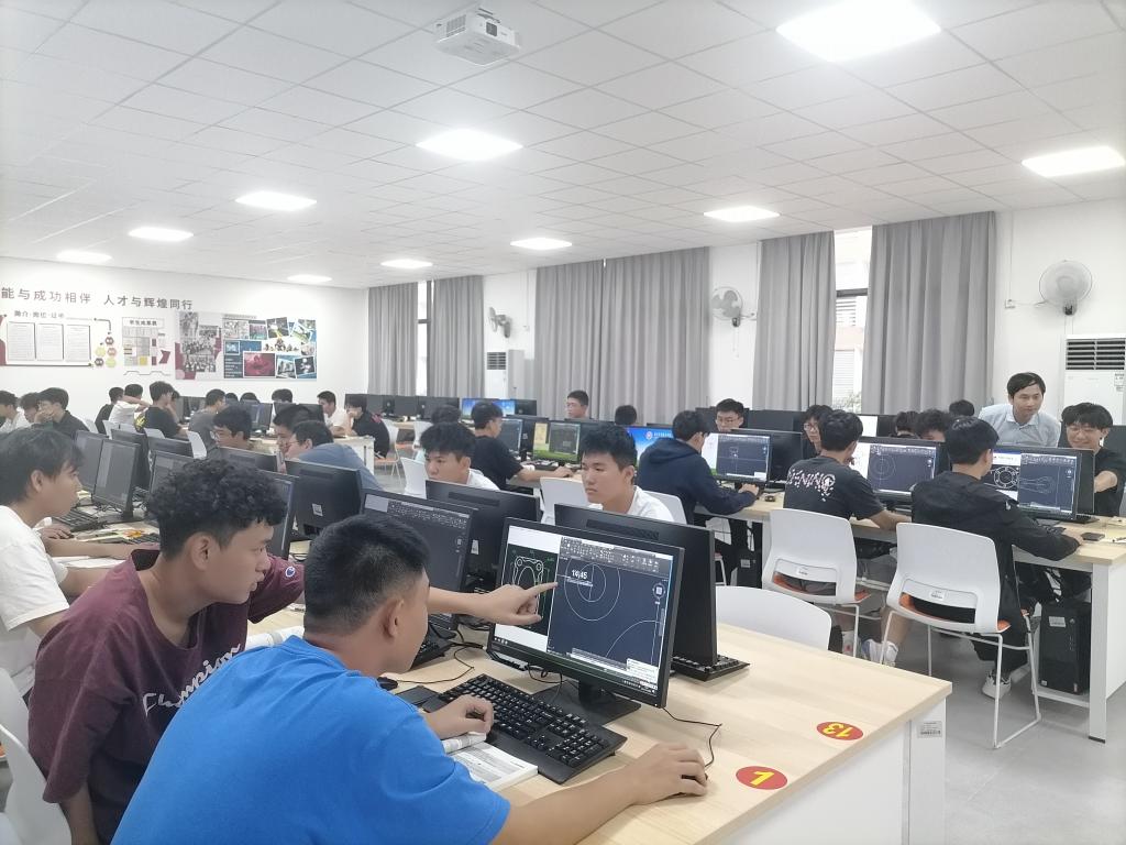 在新会校区,李训贵与副校长、新会校区管委会主任黄俊斌及管委会其他负责人了解教学和教学管理、实训室建设等方面的情况,认真听取各方面的意见和建议。深入实解训室了实训室建设情况,走进课堂了解师生教学和学习情况,并提出进一步加强教学质量监控体系建设和实训室建设的思路。新会校区整洁的教学环境、井然的课堂秩序、爱岗敬业的教师和认真学习的学生,展示了师生良好的精神状态和严谨的教风学风。