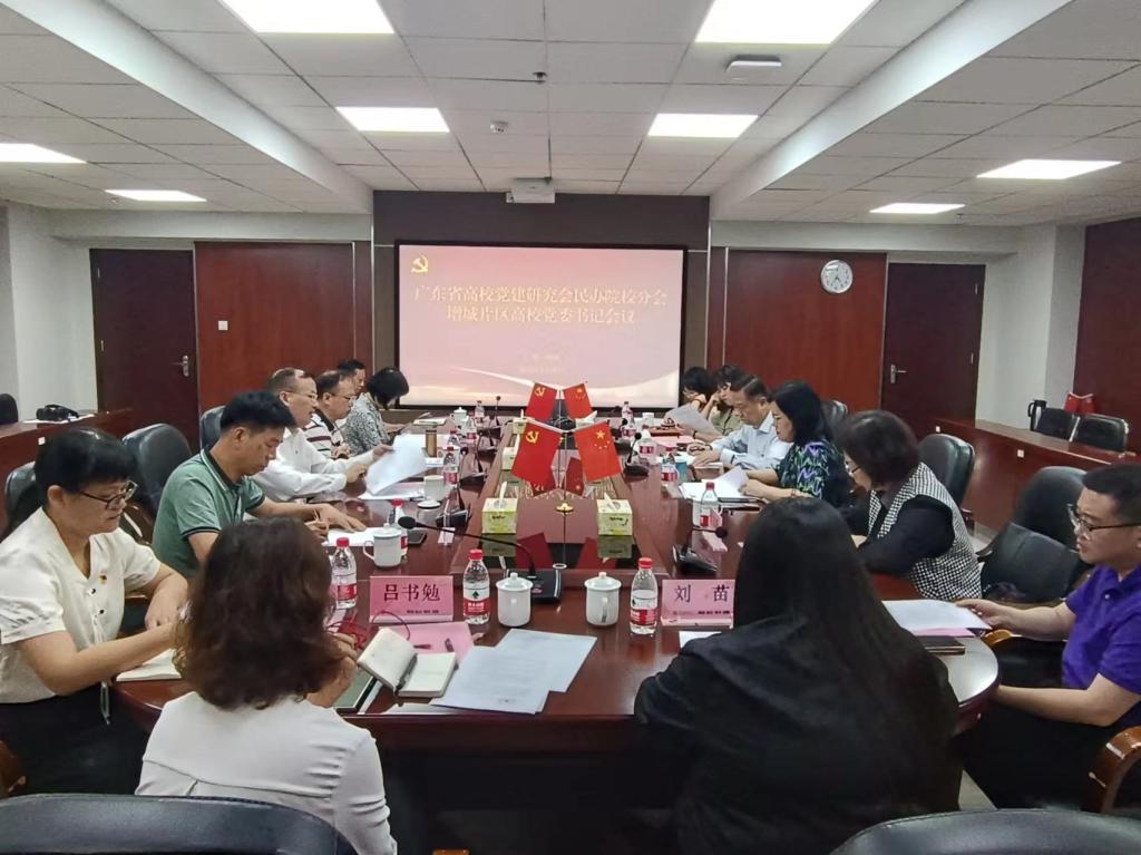 会议现场,与会领导就广东省高校党建研究会民办院校分会2024年工作要点和增城区“1+7+N”校地宣传思政联盟工作进行了交流。
