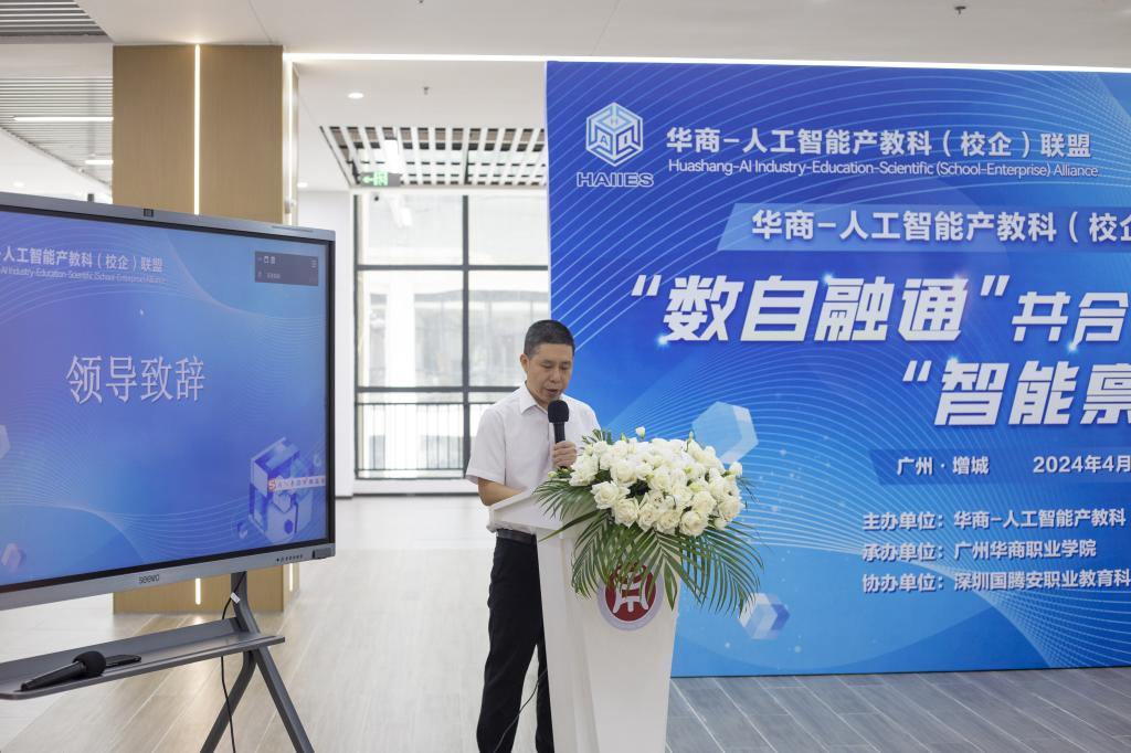 孙虎作欢迎致辞。他对到场嘉宾表示热烈欢迎,对其给予beat365工作的大力支持表示衷心感谢。他指出,华商-人工智能“产教科”(校企)联盟的创立与成立,旨在服务国家数字化发展战略与技能型社会的构建。我们依托广州华商人工智能产教融合实训基地,秉承“项目牵引、数智驱动、三融三创、跨域发展”的原则,积极打造高等职业教育人工智能“产教科”协同发展的新模式,以期实现更高效的产教融合,推动行业技术的创新发展。