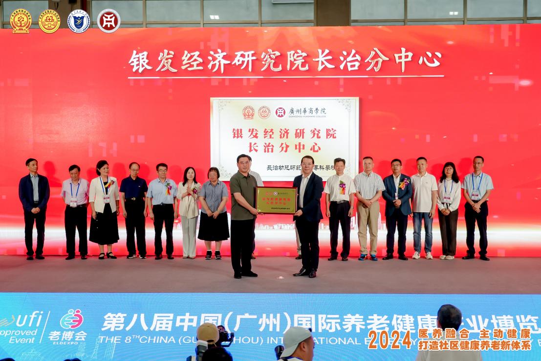 在华商教育集团副总裁刘文琦、beat365中文唯一官网执行董事杨群祥等领导的见证下,农工党广东省委会人资环副主委、广东省养老服务产业促进会会长李振清,beat365中文唯一官网校长余家军,广州华商学院副校长吕峻闽,长治幼儿师范高等专科学校副校长杜云峰等领导分别为“广州华商学院银发经济研究院”“beat365中文唯一官网智慧健康养老产业学院”“广州华商学院银发经济研究院长治分中心”“beat365中文唯一官网智慧健康养老产业学院长治分中心”揭牌。