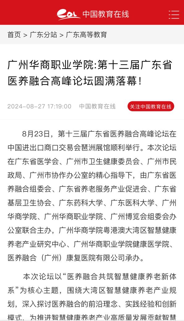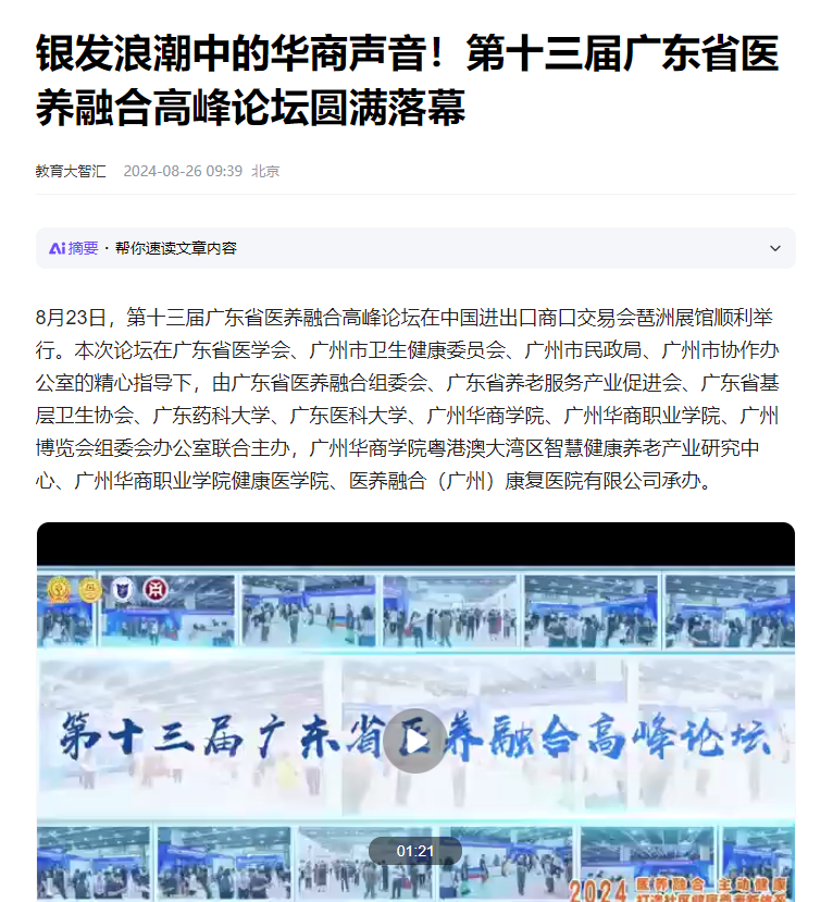 通过各大媒体的广泛传播,此次高峰论坛的影响力进一步扩大,不仅加深了公众对医养融合领域的认识和理解,也极大地提升了beat365的社会知名度和影响力。众多行业专家和学者的精彩发言与深入交流,为beat365在医养融合领域的研究与实践提供了宝贵的思路和启示。