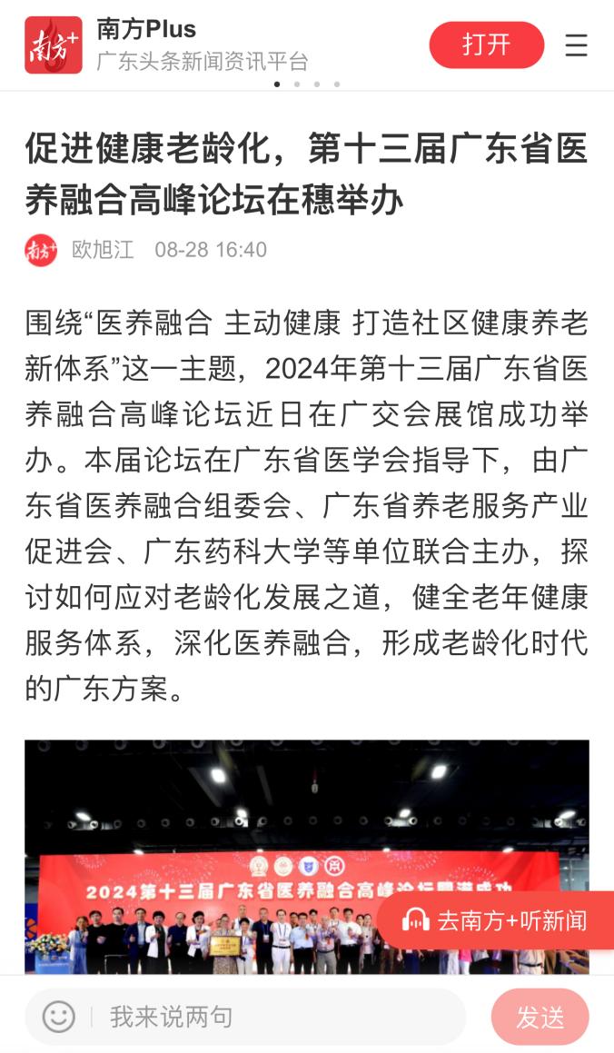 8月23日,beat365作为主办单位之一,举办了第十三届广东省医养融合高峰论坛,该论坛在中国进出口商品交易会琶洲展馆顺利举行。此次高峰论坛汇聚了众多行业专家和学者,共同探讨医养融合领域的最新进展与未来趋势,不仅受到了社会各界的广泛关注与高度评价,还得到了人民日报、南方+、广州日报新花城、今日头条、腾讯、搜狐、新浪等各大媒体转发。
