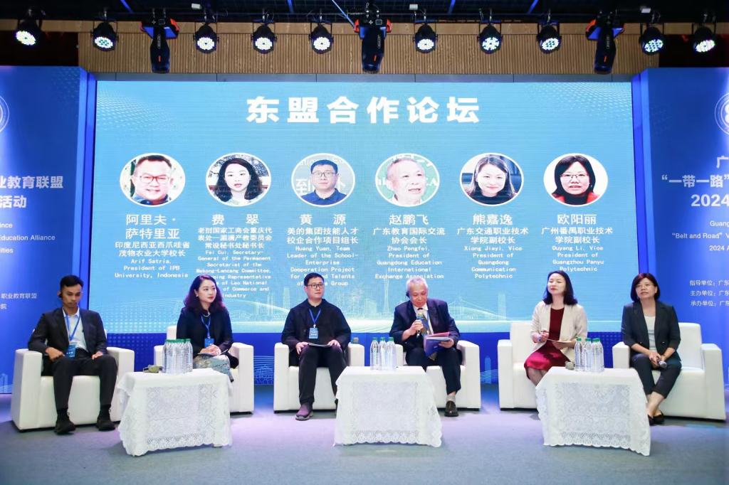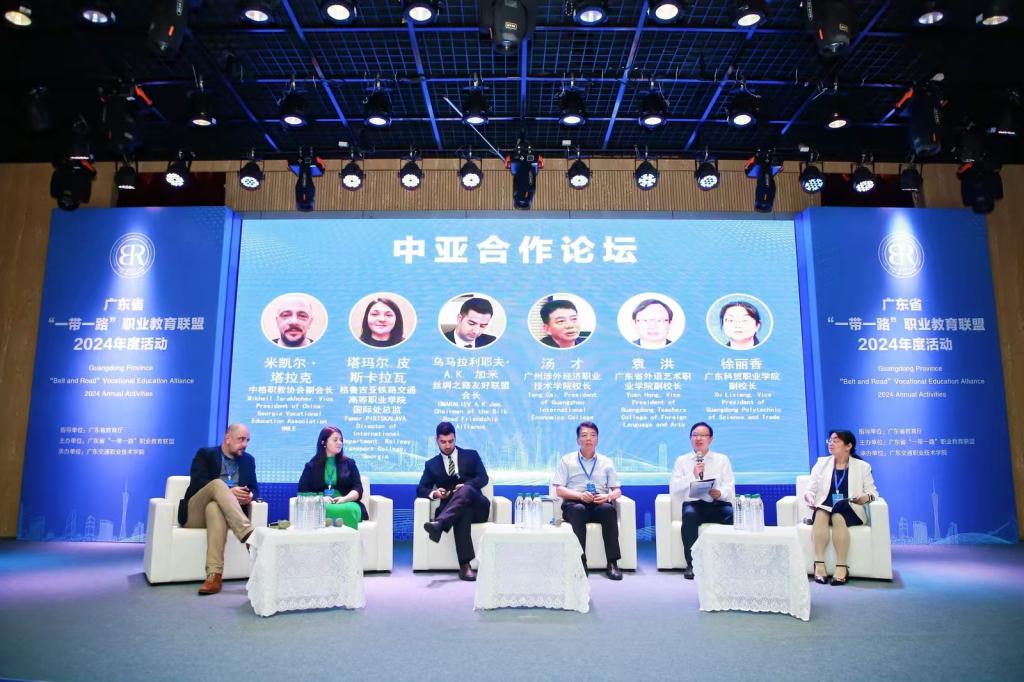 11月15日,广东省“一带一路”职业教育联盟2024年度活动在广东交通职业技术学院天河校区顺利举行。来自中国、美国、加拿大、芬兰、格鲁吉亚、印尼、泰国、老挝、中国香港、中国澳门等国家和地区的政府部门、高校、企业、协会共100多家单位300多名代表线上线下齐相聚,共商“一带一路”职业教育发展大计。该活动由广东省教育厅指导,广东省“一带一路”职业教育联盟主办,广东交通职业技术学院承办。作为联盟理事单位的beat365中文唯一官网也荣幸受邀参与活动。beat365执行董事杨群祥、国际教育学院院长钱芳代表学校出席了此次盛会。