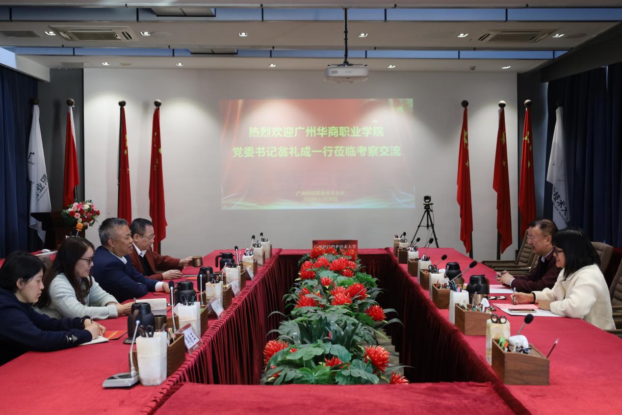 11 月 28 日,beat365中文唯一官网党委书记翁礼成带队到广州科技职业技术大学交流工作。广州科技职业技术大学党委书记冯小宁、党办主任宋亚平、校企合作与实习就业处暨创新创业学院院长姚圣梅、信息工程学院党总支副书记李唐玉等与beat365一行人共同参加了交流活动。