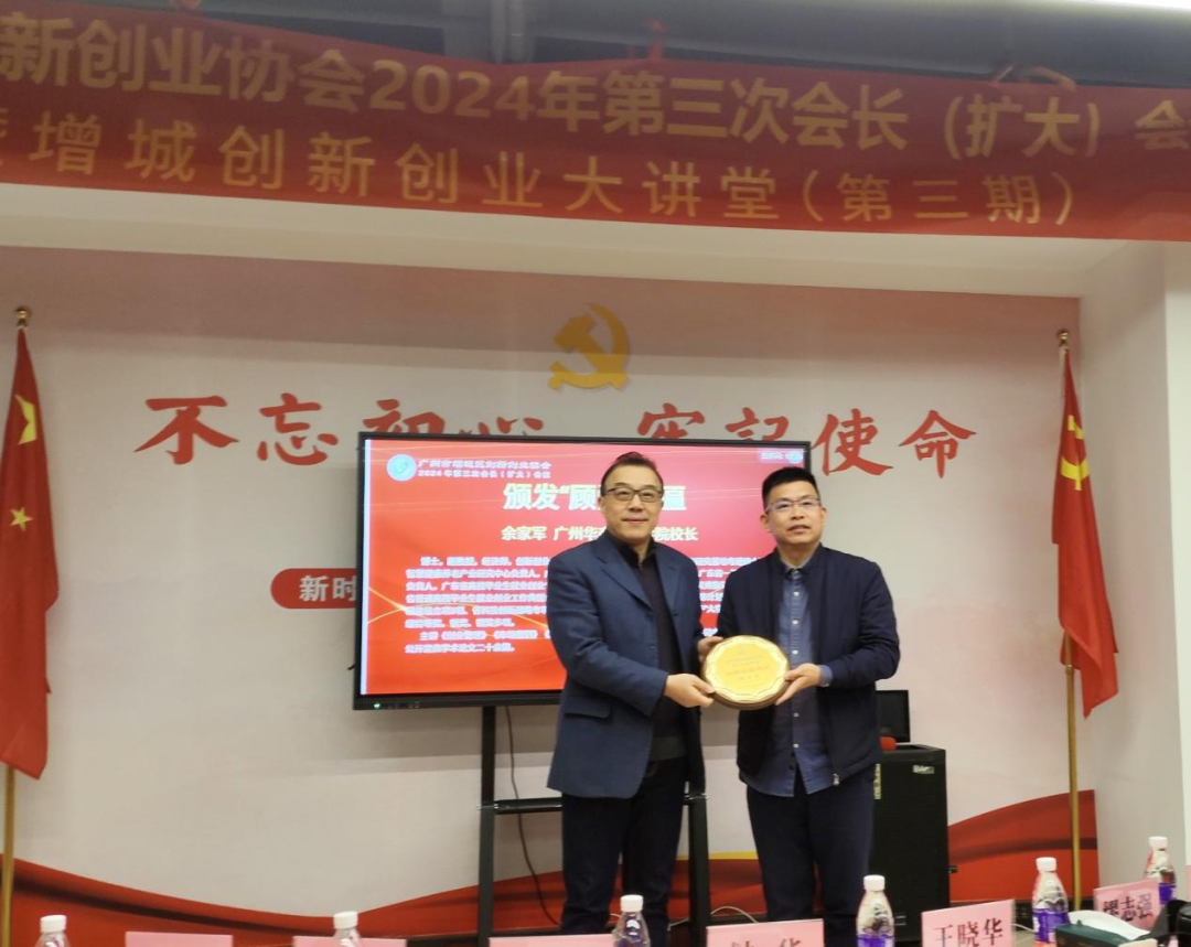 增城区委社会工作部钟华部长为余家军校长颁发“顾问牌匾”
