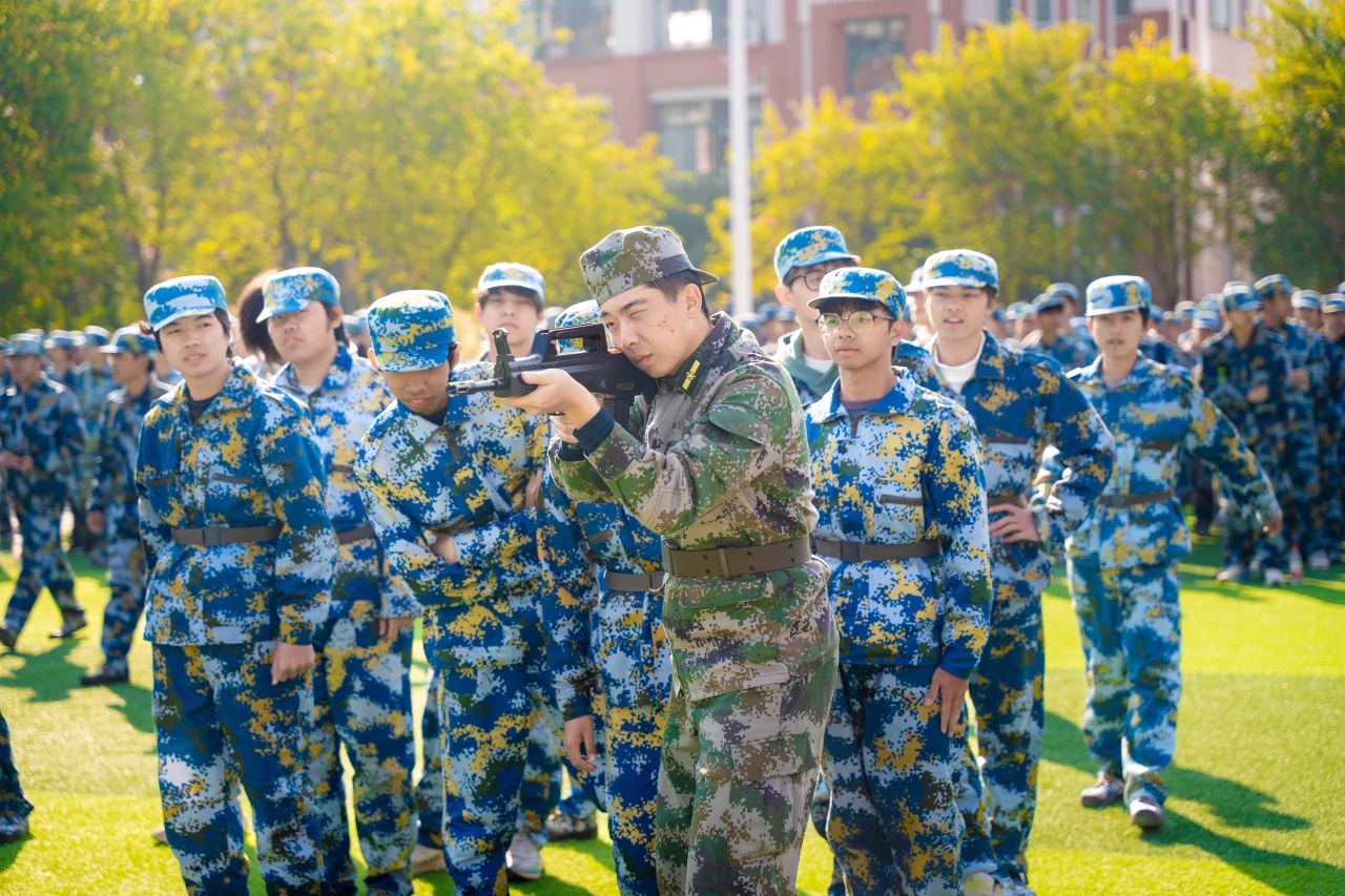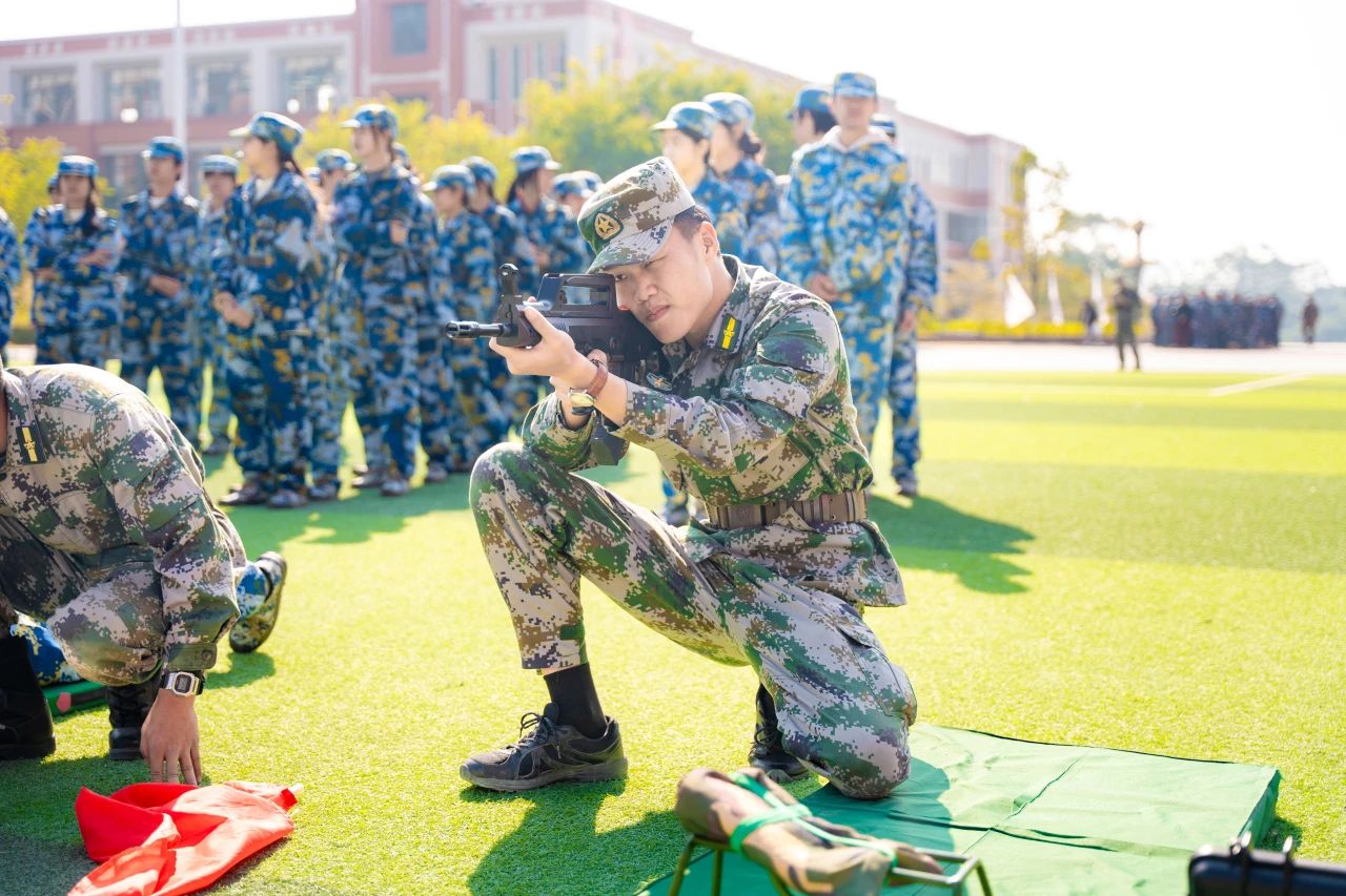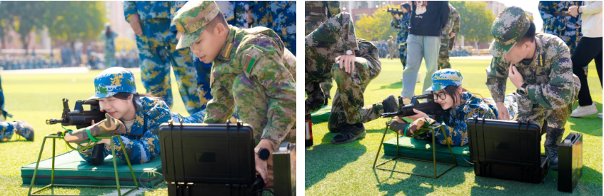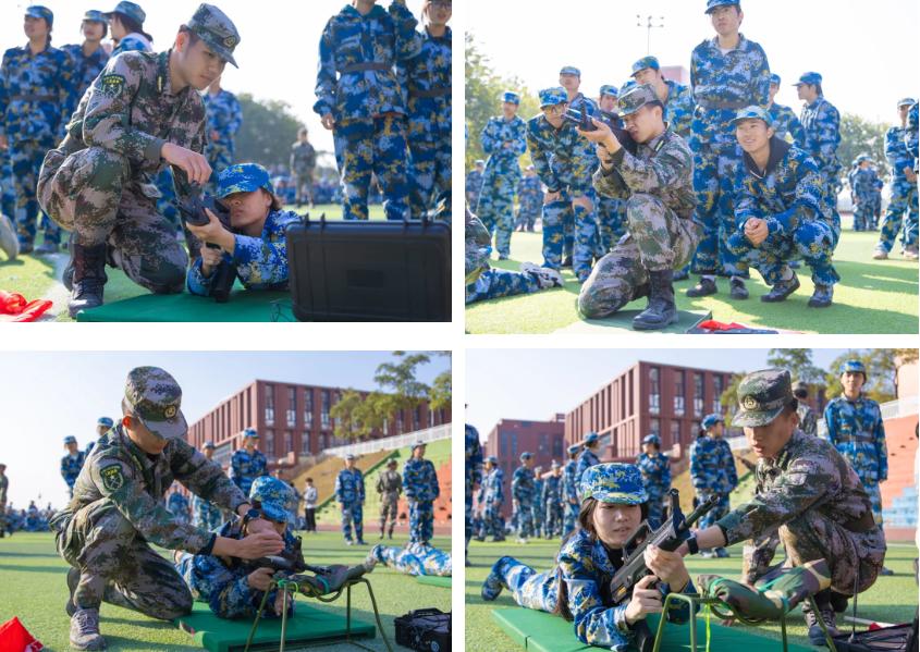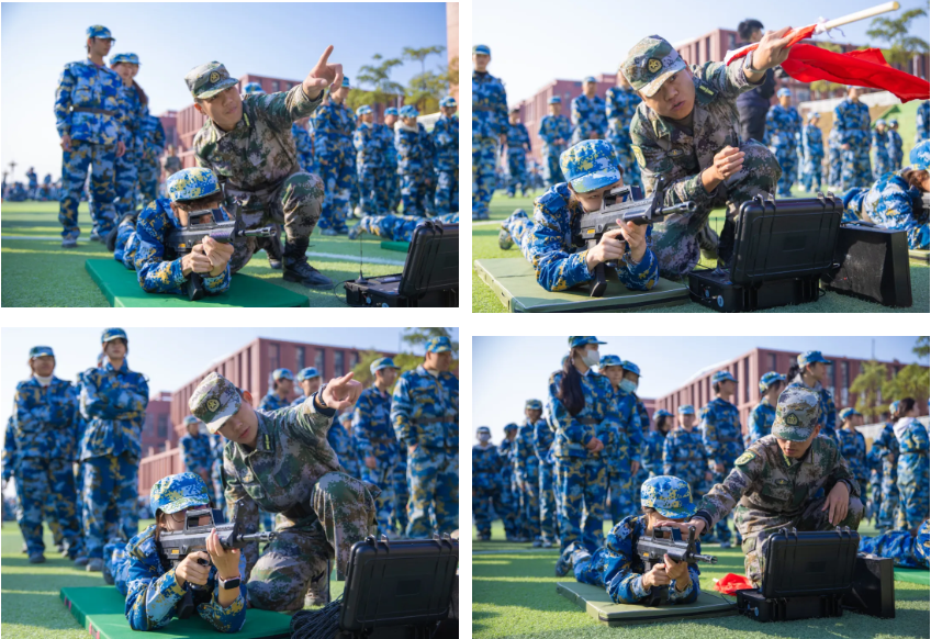 模拟训练现场,军训教官向新生们展示了规范的射击流程,并对射击动作的要领进行了细致入微的讲解与辅导。